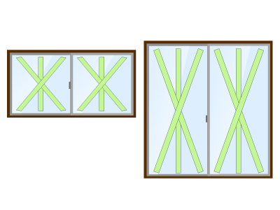 ガムテープをバッテンに貼るのは割れた時の飛散防止が目的で、ガラスの